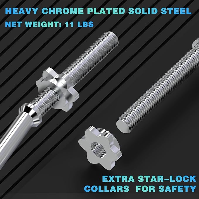- HEAVY CHROME PLATED SOLID STEEL - This dumbbell curl bar is made of solid steel with chrome plated surface which providing excellent corrosion resistance and oxidation resistance. This curved bar makes performing curls easier than the straight curl bar as the curvature enables you remain in a more natural position and reduce the strain to your wrist.