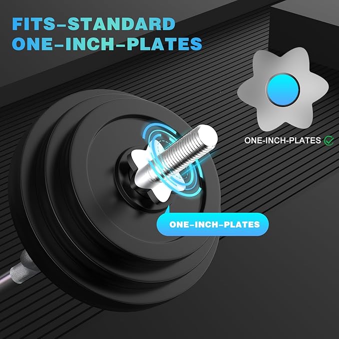 - 300LBS WEIGHT CAPACITY - The length of the standard EZ bar is 47 inches, 25 mm diameter. This weight lifting set is compatible with any 1-inch weight plates without issues and can support a weight capacity up to 300 lbs.