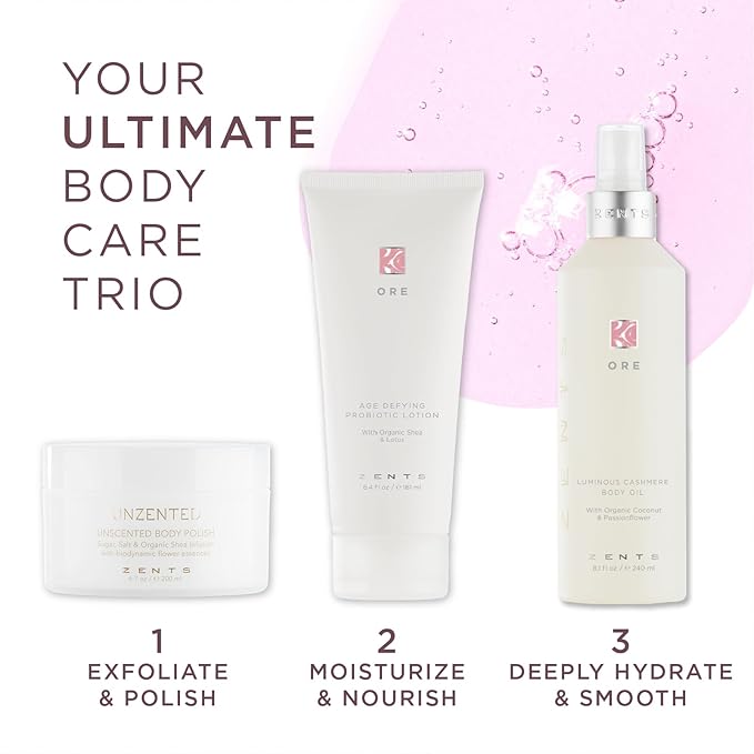 Zents Luminous Cashmere Body Oil (Ore Fragrance) | Moisturizing Body Oil with Vitamin E & Organic Coconut Oil | Softens & Smooths Skin | 8 fl oz