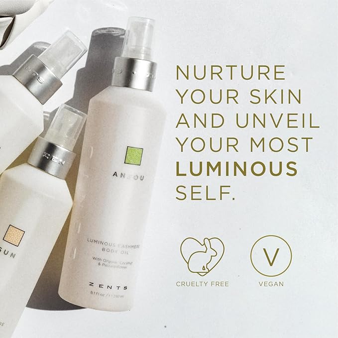 Zents Luminous Cashmere Body Oil (Anjou Fragrance) | Moisturizing Body Oil with Vitamin E & Organic Coconut Oil | Softens & Smooths Skin | 8 fl oz