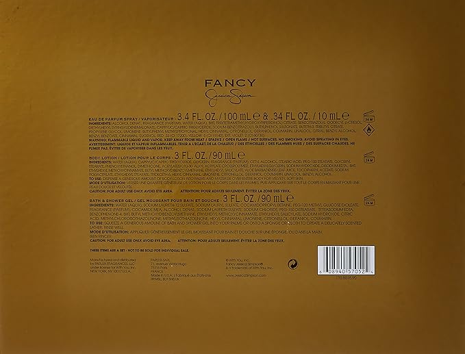 - 4 Pc Gift Set 3.4oz EDP Spray, 0.34oz EDP Spray, 3oz Body Lotion, 3oz Bath & Shower Gel