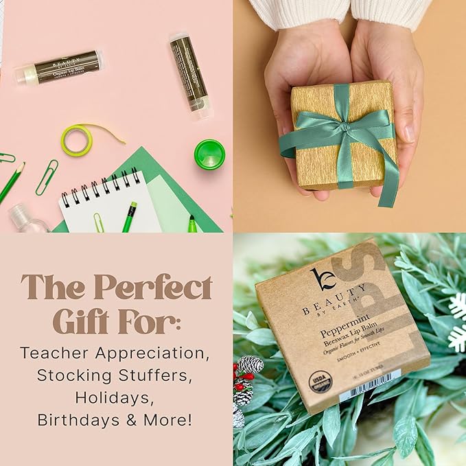 - PERFECT GIFT FOR ANY OCCASION: This organic lip balm set makes 𝐢𝐝𝐞𝐚𝐥 𝐬𝐭𝐨𝐜𝐤𝐢𝐧𝐠 𝐬𝐭𝐮𝐟𝐟𝐞𝐫𝐬 for woman, chapstick gift set for women, or stocking stuffers for wives. Beautifully packaged and suitable for all, it’s a thoughtful and practical lip balm stocking stuffer and stocking filler for women.