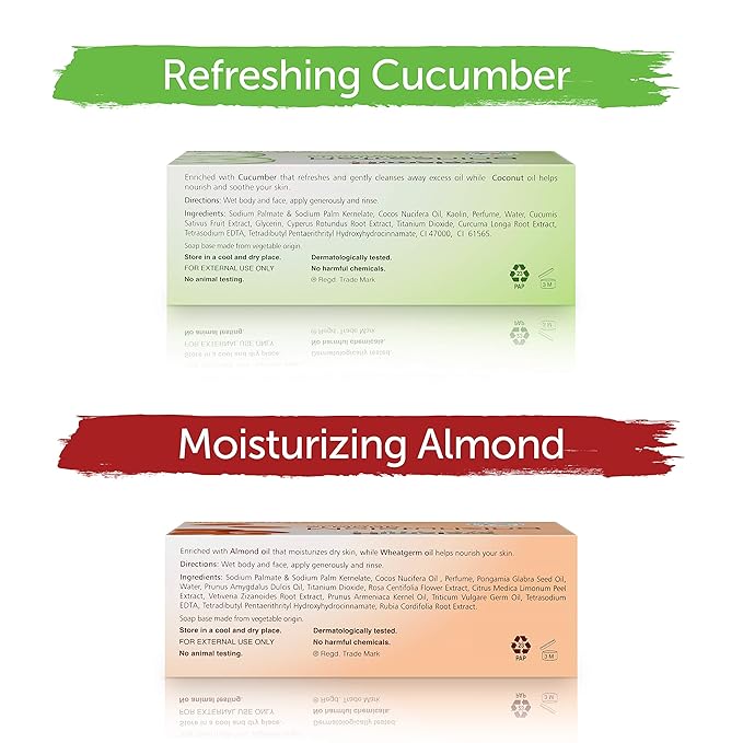 - FOUR GREAT CLEANSING BARS: Try them all. Moisturizing Almond, Nourishing Cream & Honey, Purifying Neem & Turmeric, and Refreshing Cucumber.