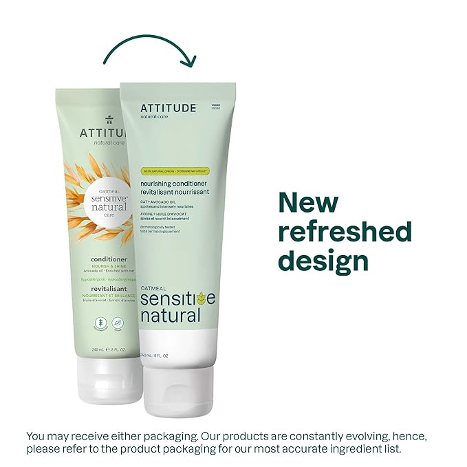 ATTITUDE Hair Conditioner for Sensitive Dry Scalp, Dry and Damaged Hair, Soothing Oat, Naturally Derived Ingredients, Dermatologically Tested, Vegan Detangler, Nourishing, 8 Fl Oz