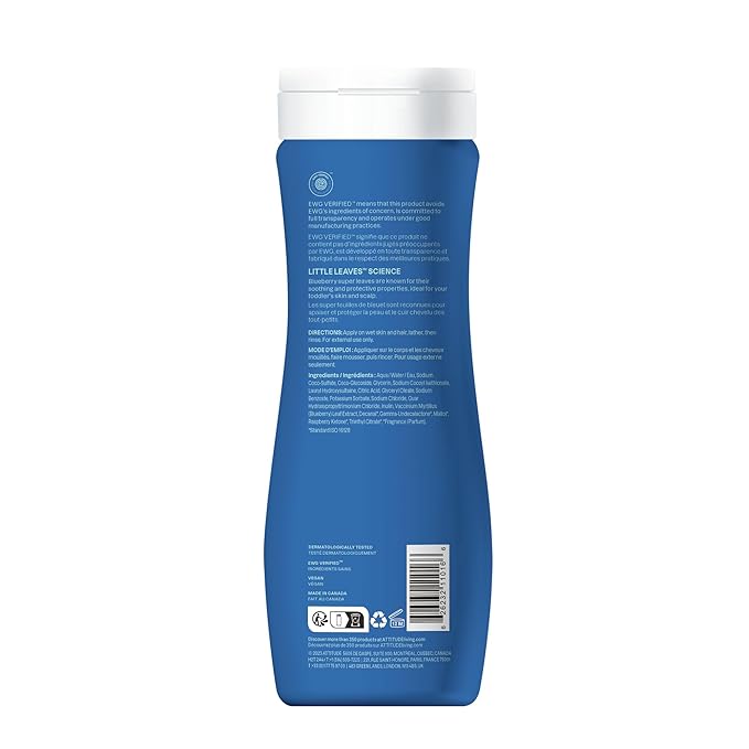 ATTITUDE Shampoo and Body Wash for Kids, EWG Verified Hair and Body Cleanser, Dermatologically Tested Soap, Plant and Mineral Based Bath Products, Vegan, Blueberry, 16 Fl Oz