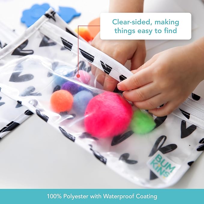 - REUSE AND REDUCE WASTE – The smart alternative to single-use plastic bags; these bags are made from Bumkins' original waterproof fabric that’s both soft and strong, a secure zipper closure; tough enough for daily use