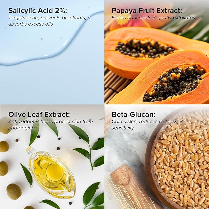- Soothing Botanicals: An excellent toner for oily skin, this pore cleaner also contains a rich blend of botanical extracts including Papaya, Olive, and Rosemary that soothe skin to eliminate irritation and help minimize signs of acne scarring.