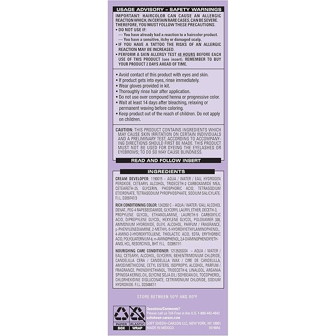 - Nourishing care - Designed to help protect relaxed and Natural hair while coloring, this conditioner is infused with Argan Oil and Vitamin e-to provide intense nourishment from root to tip.