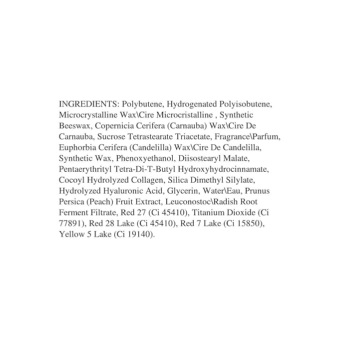 - Firmer and Smoother Lips: A special blend of Hyaluronic Acid and Vegetable Collagen help to make lips appear plumper and smoother.