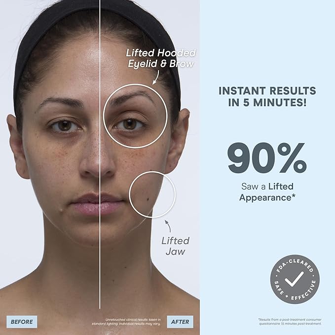 - Instant & Lasting On-The-Go Results - The petite and portable design of your NuFACE MINI+ facial toning device makes it perfect for on-the-go lifting. Quick 5-minute sessions throughout the week help to sculpt and firm the face & neck, improve cheek contour and lift brows. 95% of users say they saw improvement in the appearance of sagging skin around the neck, and 90% saw a more lifted jaw appearance.