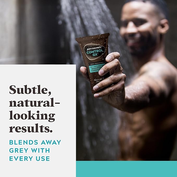 Just for Men Control GX Grey Reducing Shampoo for Textured Hair, Gradual Hair Color for Men with Keratin, 4 Fl Oz - Pack of 1 (Packaging May Vary)