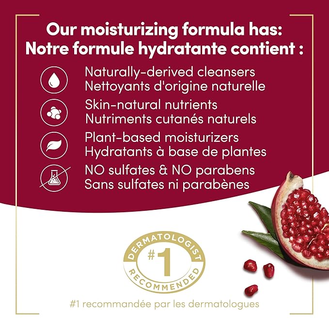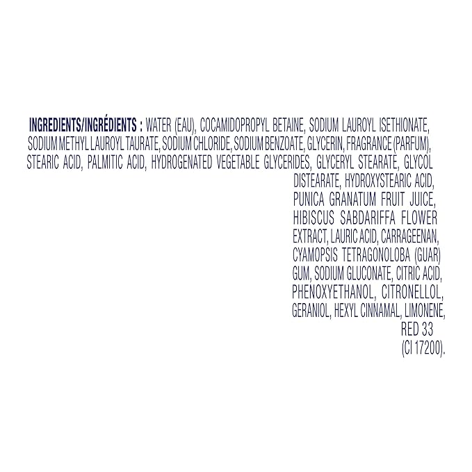 - WITH POMEGRANATE & HIBISCUS: This gentle skin cleanser, infused with pomegranate and hibiscus, revives your skin and senses.