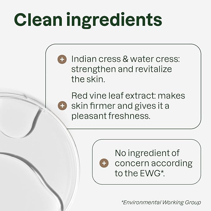 - NATURALLY SOURCED INGREDIENTS: Made with 98.6% naturally sourced ingredients* including red vine leaf extract that enhances skin firmness and pomegranate extract to restore the suppleness and appearance of dry skin, as well as watercress and Indian cress extracts known to revitalize dry skin and restore the skin’s suppleness *According to ISO 16128 standards