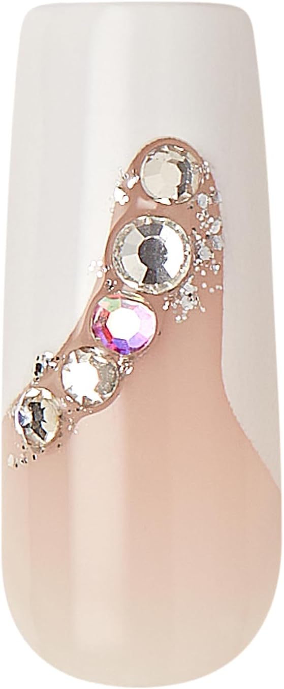 KISS Premium Classy Fake Nails - Stay Modish, Long & Square, Super Glam, Jewel Accents, Waterproof, Smudge Proof, No Dry Time, Durable, Takes Minutes, Quick & Easy | 30 Count
