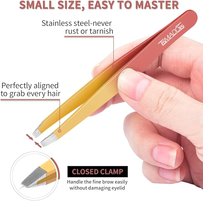- TsMADDTs Tweezers Set: The 7pcs tweezer set come with 4pcs eyebrows tweezers(Pointed, flat, slant&angled tweezers), 1pcs curved eyebrows scissor, 1pcs double side eyebrow brush and 1pcs eyebrow razor. Lightweight and portable, our tweezers set makes for a thoughtful choice for any occasion