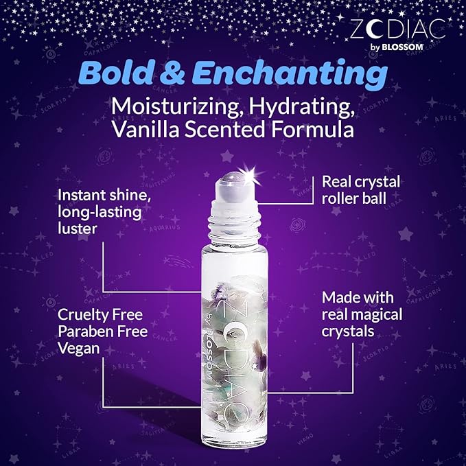 - ZODIAC CRYSTAL LIP GLOSS: Instant, long-lasting, high shine lipgloss with crystals to align with your cosmic sign. Available in all 12 zodiac signs (Aries, Taurus, Gemini, Cancer, Leo, Virgo, Libra, Scorpio, Sagittarius, Capricorn, Aquarius, and Pisces) and make the perfect gift for those astrologically inclined