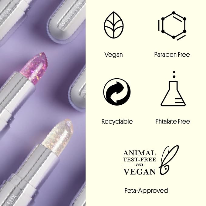 Winky Lux Glitter Confetti & Glimmer Balm, pH Lipstick & Tinted Lip Balm, Sheer Pink Vegan & Cruelty Free Lipstick, Lavender Confetti & Rose