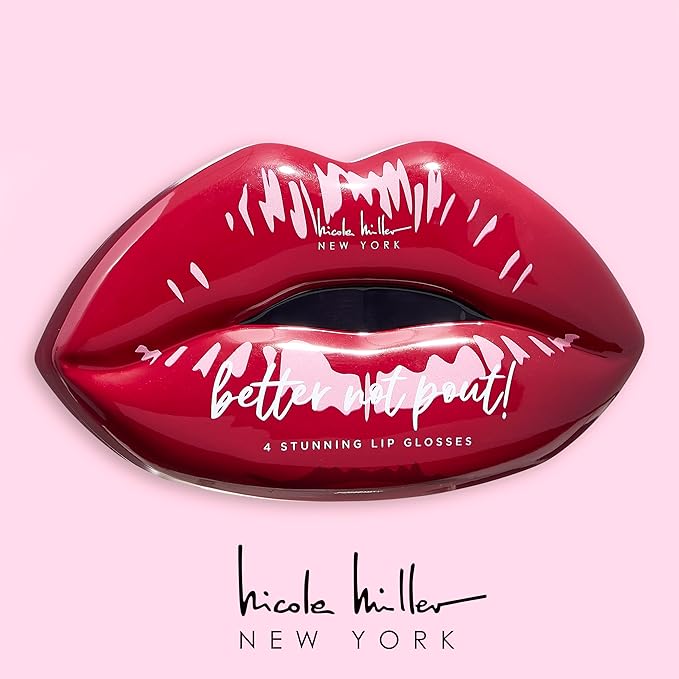 Nicole Miller Lip Gloss Collection Shimmery Glosses for Women and Girls Long Lasting Color Set with Rich Varied Colors, Better Not Pout Red, 4 Count (Pack of 1)