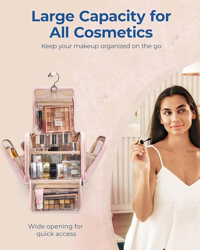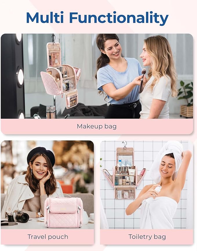 - 【Multi-functional Makeup】: This portable hanging makeup bag is a multifunctional organizer bag that combines the functionality of a makeup bag and a travel toiletry bag. It is an excellent choice for a wide range of activities, from travel, business trips, fitness routines, and beach outings to picnics and home storage. It also makes for a perfect gift for ladies, friends, and family on special occasions such as birthdays, Christmas, and Valentine's Day.