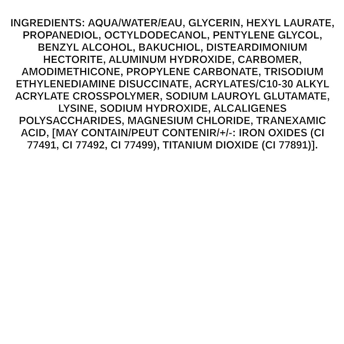 - Microdroplet technology pigmented capsules blend easily to distribute a sheer, even tint for a radiant bare-skin filter effect with a refreshed and youthful appearance with a natural skin-like finish, improving complexion’s radiance, skin’s texture, suppleness and firmness after 2 weeks of use* (*Clinical study on 30 females; clinical grading evaluation after daily application for 2 weeks)