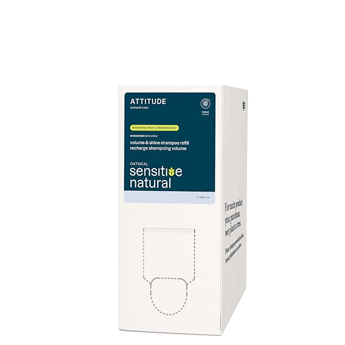 ATTITUDE Volume and Shine Hair Shampoo for Sensitive Dry Scalp, EWG Verified, Soothing Oat, For Thin Hair, Naturally Derived Ingredients, Vegan and Plant-Based, Unscented, Bulk Refill, 67.6 Fl Oz