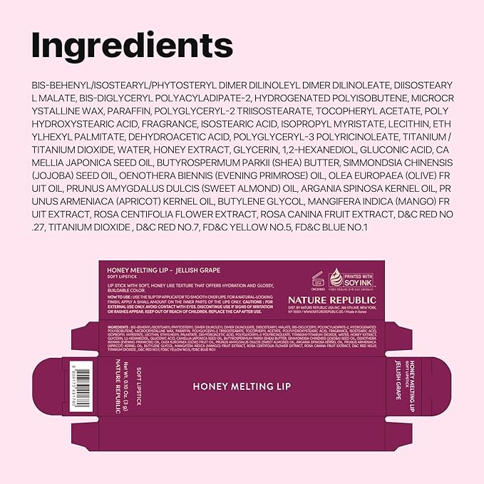Nature Republic HONEY MELTING LIP (09 GRAPE) SOFT LIP STICK Hydrating Gloss, Moisturizing balms, Sheer tint, Shine & Nude, Glowy Finish, korean make up