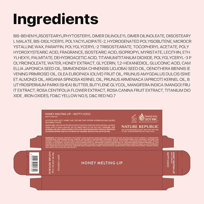 Nature Republic HONEY MELTING LIP (06 COCO) SOFT LIP STICK, Hydrating Gloss, Moisturizing balms, Sheer tint, Shine & Glowy Finish, korean make up