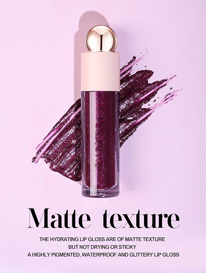 - ✨【Shimmery Shine Lip Gloss】Doll up with this moisturizing lip gloss that coats lips in illuminating pearls and a glimmer of color to reflect light. A highly pigmented, waterproof, and glittery lip gloss. The hydrating lip glossary of matte texture, but not drying or sticky. Wear alone or layer over your favorite lip color as the makeup finishing touch.