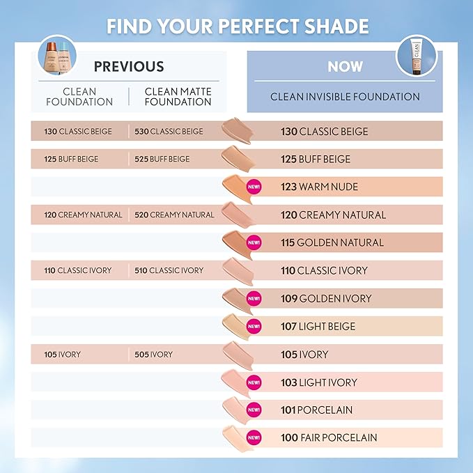COVERGIRL Clean Invisible Foundation Makeup, Dewy & Glowy Natural Finish, Buildable Coverage, Skin-Like Smooth Look, Vegan, Ivory, 1oz