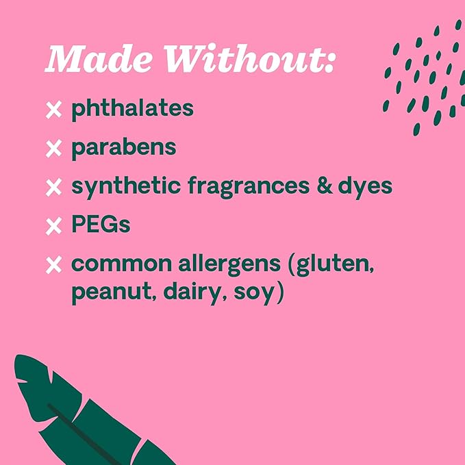 - MADE WITHOUT: phthalates, parabens, formaldehyde donors, common allergens (gluten, peanut, soy, dairy)...basically, it's made with the good stuff.