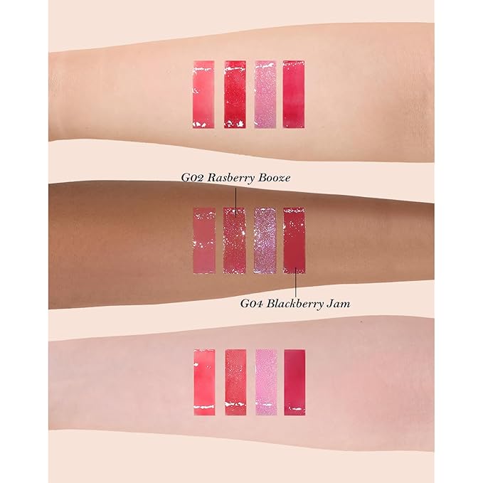 - Comprehensive Beauty Collection:Discover a luxurious assortment including: Lip Gloss (G02 Raspberry Booze + G04 Blackberry Jam) ×2, Blush (G01 Romantic Blossom + G02 Little Cranberry) ×2, Blush Brush, Hair Clip, All beautifully arranged in an elegant gift box.
