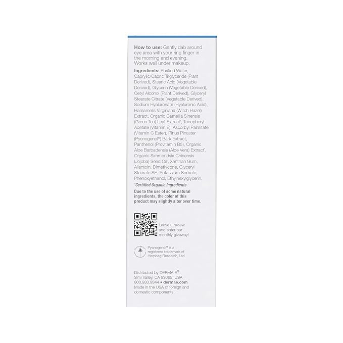Derma E Hydrating Eye Cream, 0.5 oz | Firming and Lifting, Hyaluronic Acid Treatment, Under Eye and Upper Eyelid Cream, Reduces Puffiness and Appearance of Fine Lines (Pack of 2)