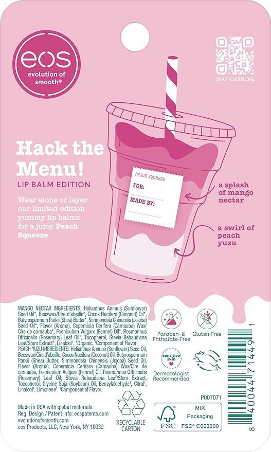 eos Flavor Lab Secret Menu Lip Balm - Peach Yuzu, Limited-Edition, Moisturizing, Hydrating, Dry Lips, Variety Pack, 0.14 oz, 2-Pack