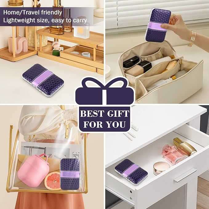 - 【Giftable Leather Case】our travel eyebrow tweezers set comes with a luxurious compact pu leather case,exquisite appearance and portable size. Steady purple PU leather case and and eye-catching purple lining, stylish and functional, tweezers for eyebrow kit for Christma Stocking Stuffers for Women Men Adults.