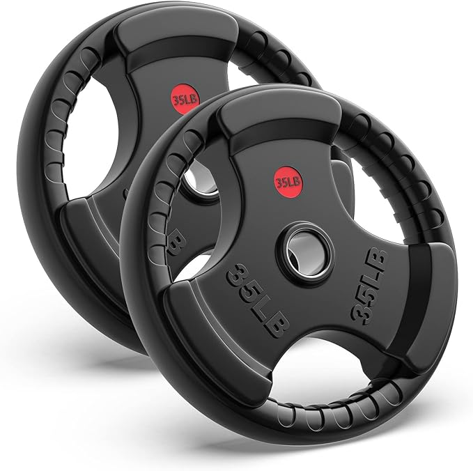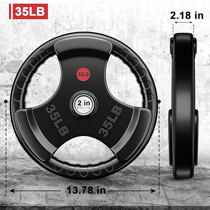 - Convenient Loading & Unloading - Each plates has 3 large openings for easier loading and unloading the bar, save your value time and effort. Labeled in LB on the surface for fast recognition. Single grip plate is also great for warm up.